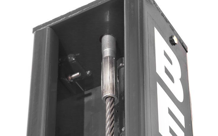 individual cable is rated to handle 6,531-kg. This makes their combined rating over 640% of the total capacity. These cables are hidden within the post columns for both the safety and overall