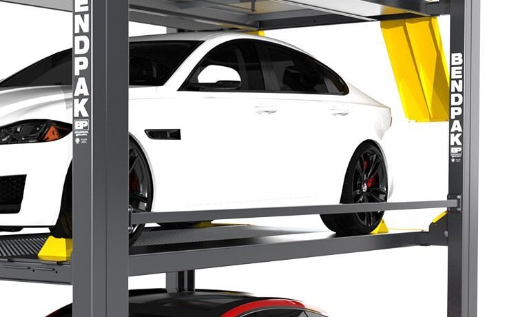 The HD-973P by BendPak is a four-post parking hoist that offers a cost-effective way to triple the capacity of typical parking areas. Our patent-pending design can be used indoors or outdoors, and this hoist allows the storage of three vehicles in a single parking space. The upper platform accommodates vehicles weighing up to 3,175-kgs., and the lower deck heftily handles up to 4,082-kgs. This is the perfect mechanical parking system for sedans, SUVs and full-size trucks.